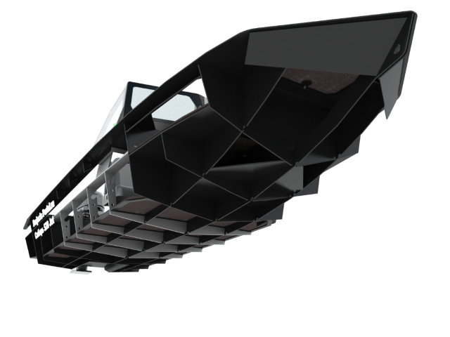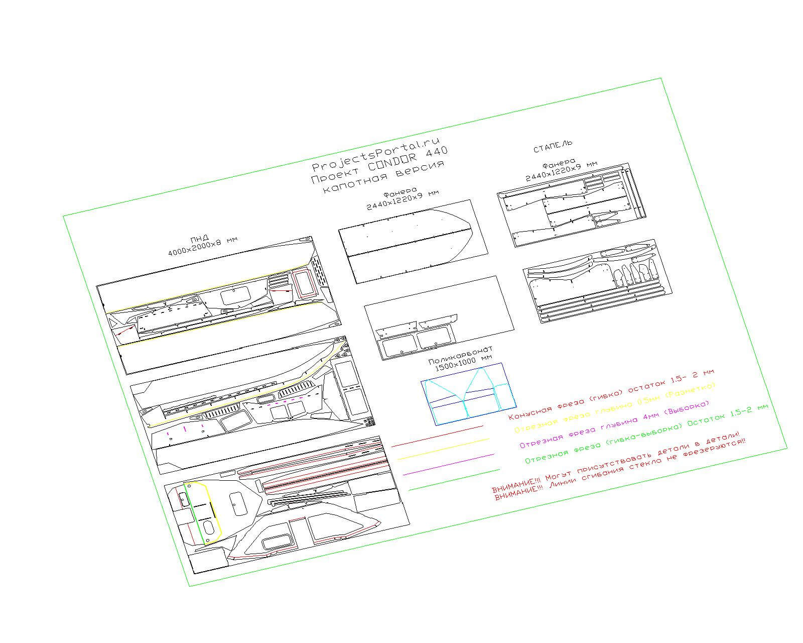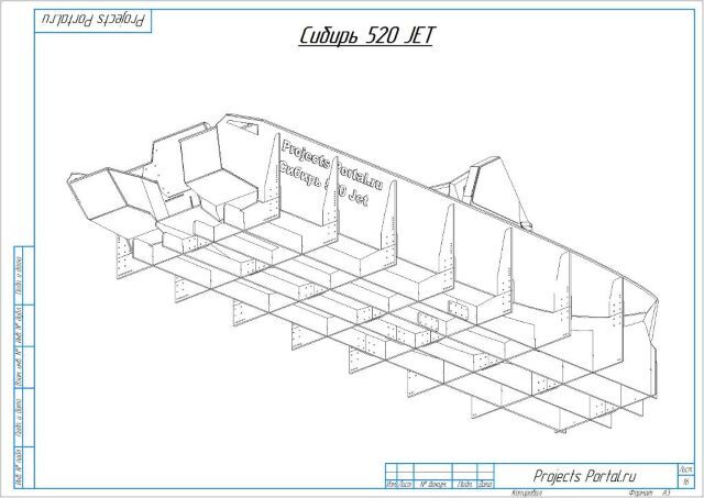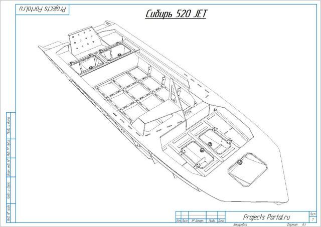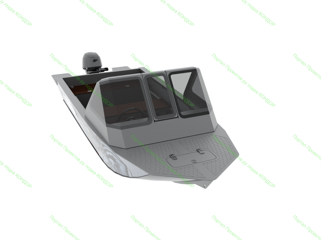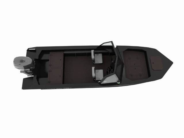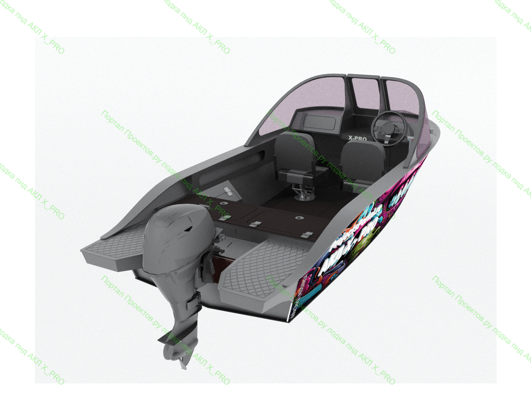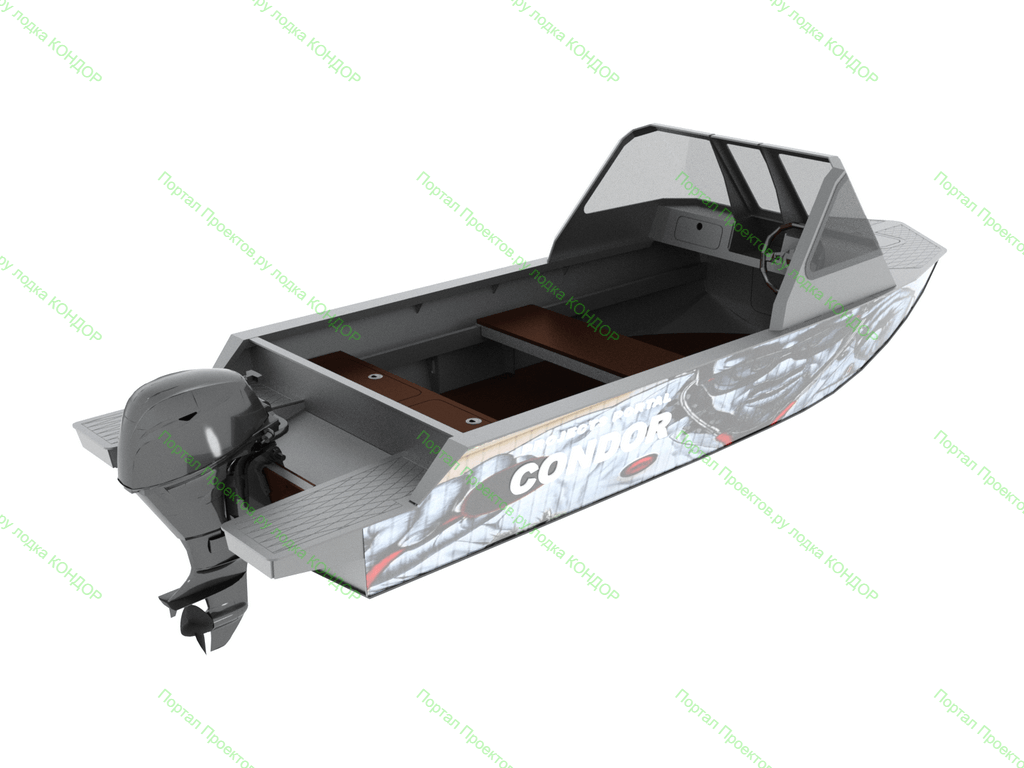Разметка на бортах и днище для позиционирования. Левое остекление открывное. Фиш-палуба носовая и кормовой диван с комингсами - сухие рундуки. Рундук-ступенька для АКБ. Продольные полки и кронштейны под спиннинги либо весла.